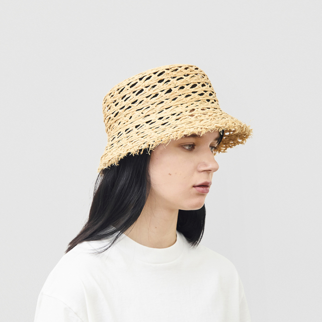TOPNEW ARRIVAL sukashi raffia braid bucket hat fringe 価格: ¥17,600 (税込) 販売期間: color: 選択してください natural 数量: 個 color在庫natural○